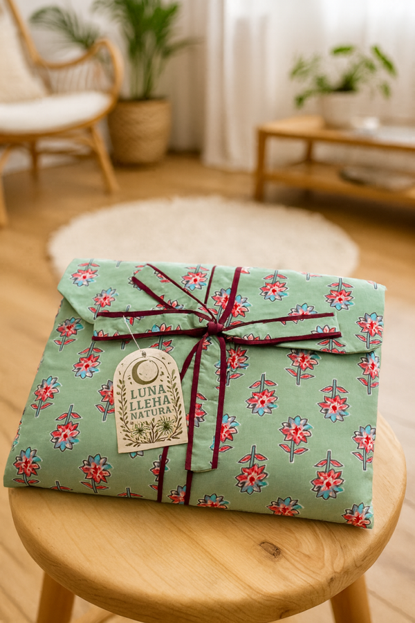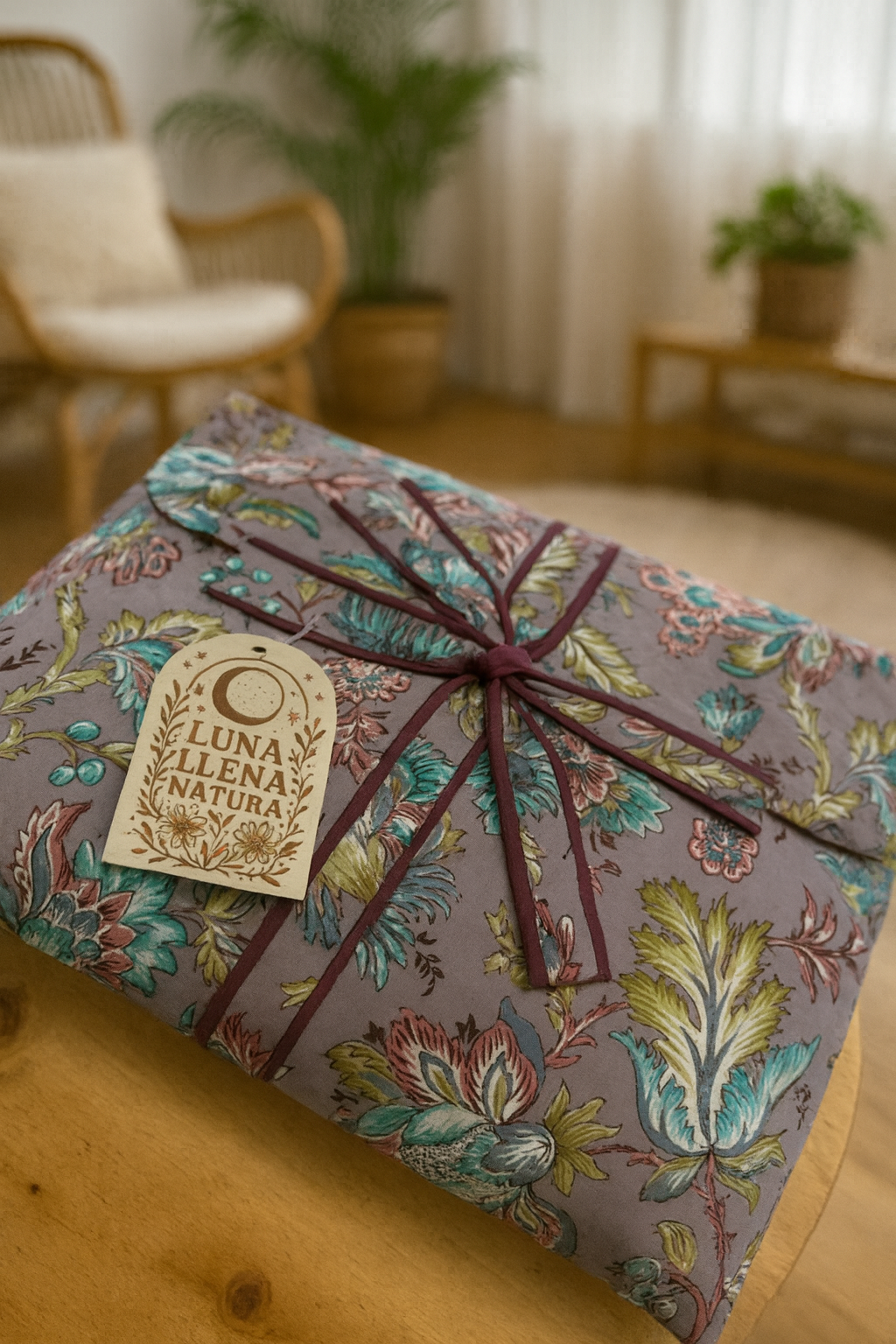 Este pijama largo está confeccionado a mano en la India con 100% algodón, lo que lo convierte en una prenda ligera, fresca y muy cómoda para el descanso. Su diseño artesanal con estampado único refleja el encanto bohemio y natural de nuestra colección.